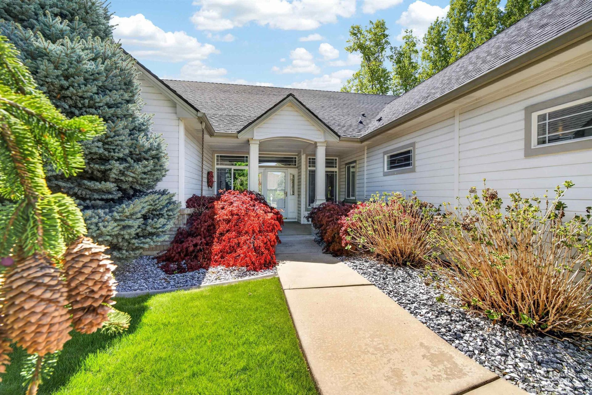 Custom Single-Level Home in Boise - Near Meridians Village This stunning custom single-level home in one of Boises most sought-after subdivisions offers the space, elegance, and privacy todays buyers are looking for - just 8 minutes from the Village of Meridian. Set on a third of an acre with no back neighbors, the home features 3 bedrooms, 2.5 bathrooms, a 3-car garage, and a beautifully manicured backyard with a covered patio - perfect for Idahos outdoor lifestyle. Inside, youll find soaring 9-foot ceilings, a dramatic vaulted entryway, and a living room that peaks at 14 feet - flooded with natural light from oversized windows. The gas fireplace adds warmth and character to this already elegant space. The thoughtful floor plan includes a formal dining room, a private office with French doors, a separate living room and family room, plus a large kitchen with all appliances and a casual eating area. The primary suite is a true retreat - 16x12 with a spa-style bath featuring a corner soaking tub, walk-in shower, and spacious walk-in closet. Whether youre searching for a Boise luxury home, a single-story property near Meridian, or a move-in-ready custom home with privacy and space - this one delivers on every front. 3 Bed | 2.5 Bath | 3-Car Garage | ~1/3 Acre | Single Level | Boise, Idaho